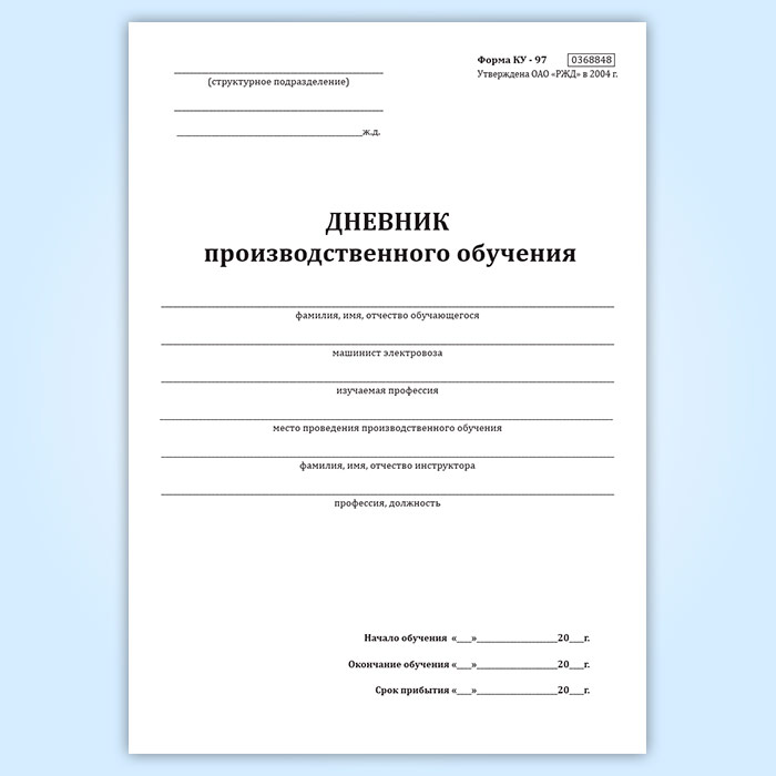 Дневник производственного обучения (форма КУ-97) в Верее купить
