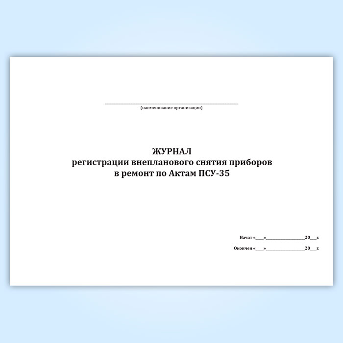 Журнал регистрации внепланового снятия приборов в ремонт по Актам ПСУ-35 в Верее купить