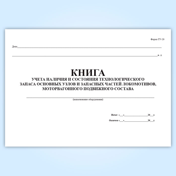 Книга учета наличия и состояния технологического запаса основных узлов и запасных частей локомотивов, моторвагонного подвижного состава (форма ТУ-20) в Верее купить