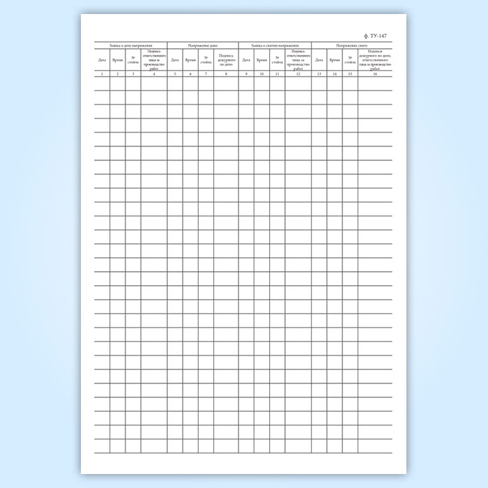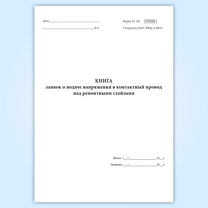 Книга заявок о подаче напряжения в контактный провод над ремонтными стойлами (форма ТУ-147) в Верее купить