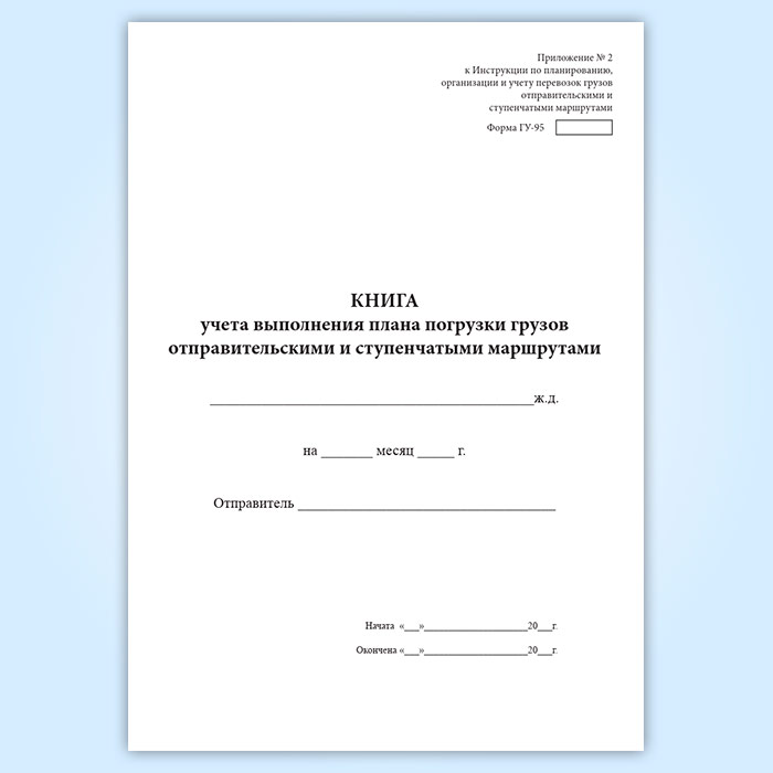 Книга учета выполнения плана погрузки грузов отправительскими и ступенчатыми маршрутами (форма ГУ-95) в Верее купить