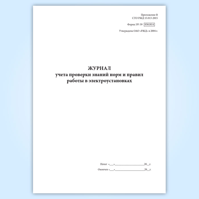 Журнал учета проверки знаний норм и правил работы в электроустановках (форма ЭУ-39) в Верее купить