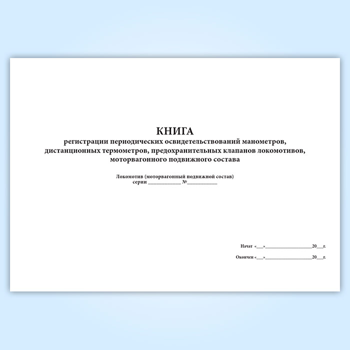 Книга регистрации периодических освидетельствований манометров, дистанционных термометров, предохранительных клапанов локомотивов, моторвагонного подвижного состава (форма ТКУ-8) в Верее купить