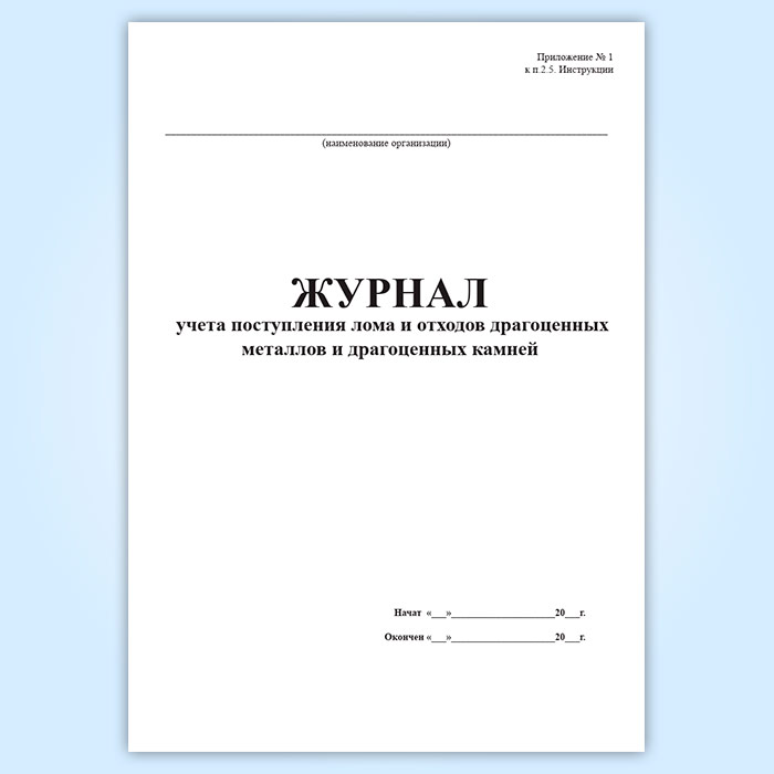 Журнал учета поступления лома и отходов драгоценных металлов и драгоценных камней в Верее купить
