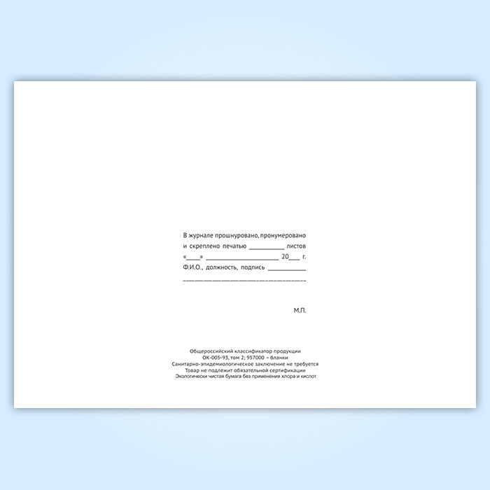 Вы получаете печатную продукцию прошнурованной и c местом для вашей печати в соответствии с действующими нормативными документами: