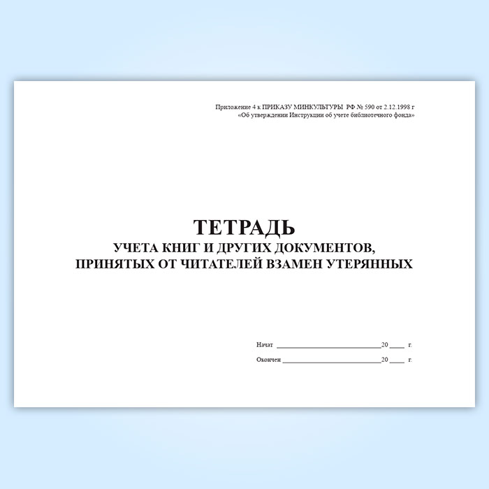 Тетрадь учета книг и других документов, принятых от читателей взамен утерянных в Верее купить