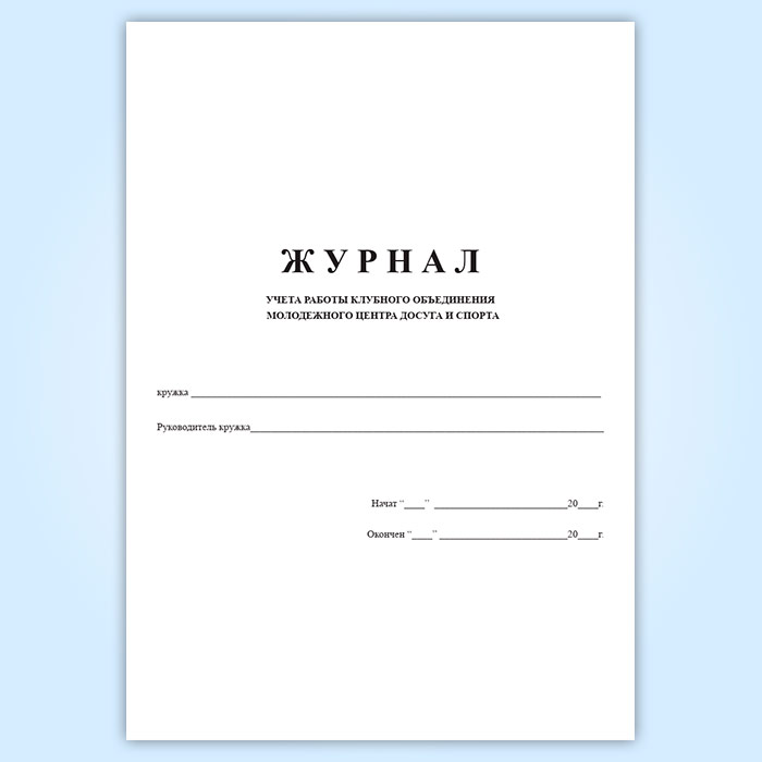 Журнал учета работы клубного объединения молодежного центра досуга и спорта в Верее купить