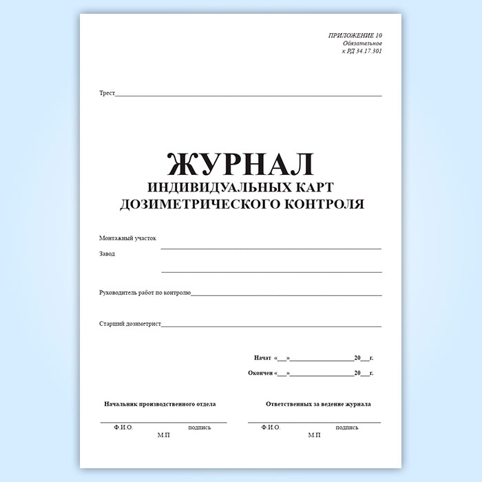 Журнал индивидуальных карт дозиметрического контроля (РД 34.17.301) в Верее купить