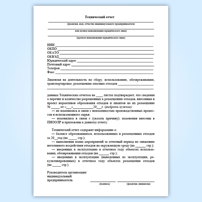 Технический отчет о неизменности производственного процесса, используемого сырья и об обращении с отходами в Верее купить