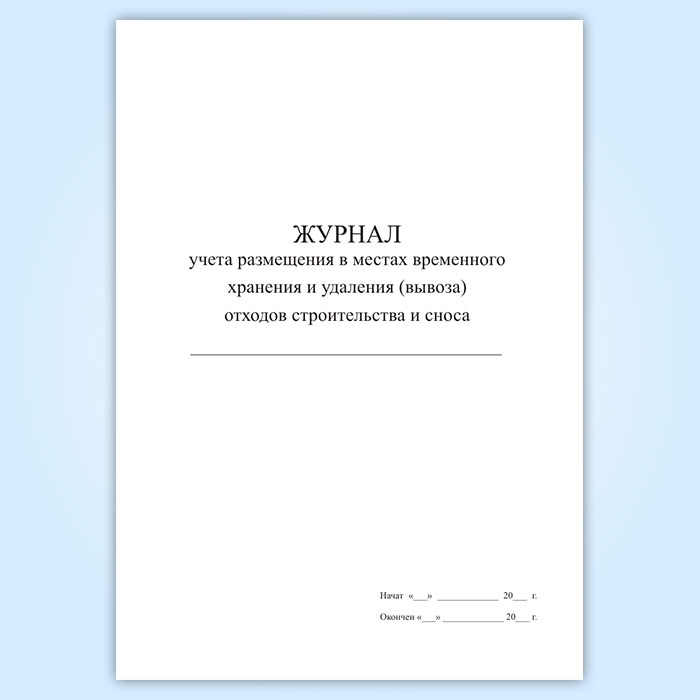 Журнал учета размещения в местах временного хранения и удаления (вывоза) отходов строительства и сноса в Верее купить