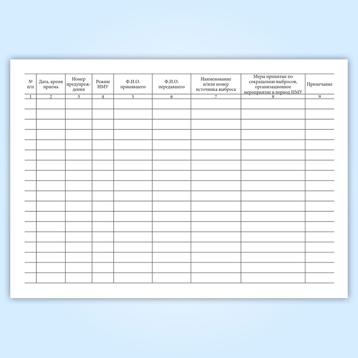 Журнал регистрации мероприятий по сокращению выбросов в период НМУ в Верее купить