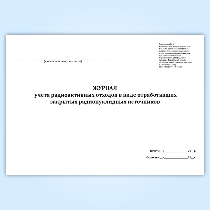 Журнал учета радиоактивных отходов в виде отработавших закрытых радионуклидных источников в Верее купить