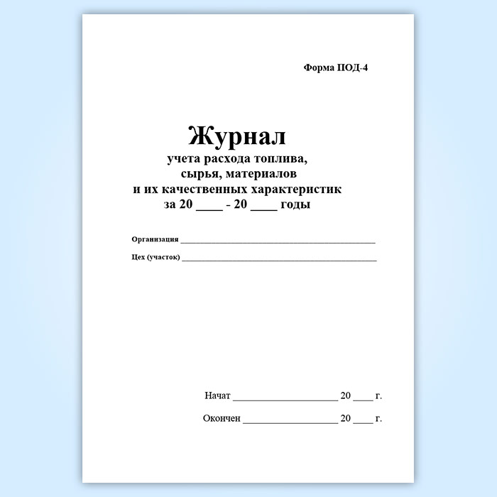 Журнал учета расхода топлива, сырья, материалов и их качественных характеристик (форма ПОД-4) в Верее купить