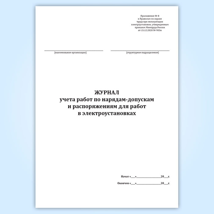 Журнал учета работ по нарядам-допускам и распоряжениям для работы в электроустановках в Верее купить