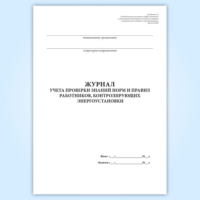 Журнал учета проверки знаний норм и правил работников, контролирующих энергоустановки в Верее купить