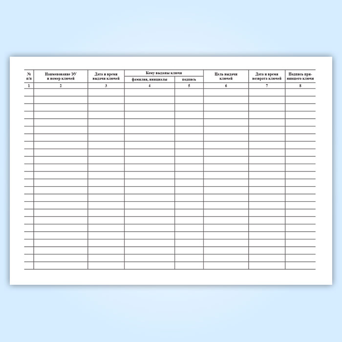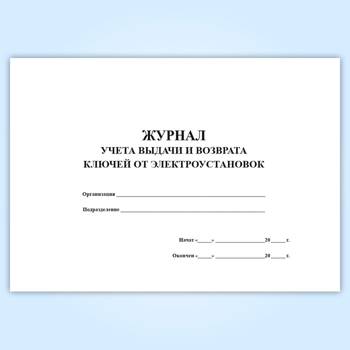 Журнал учета выдачи и возврата ключей от электроустановок в Верее купить