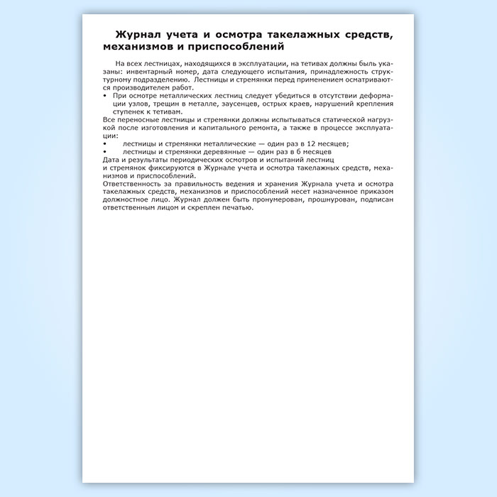 Журнал учета и осмотра такелажных средств, механизмов и приспособлений в Верее купить