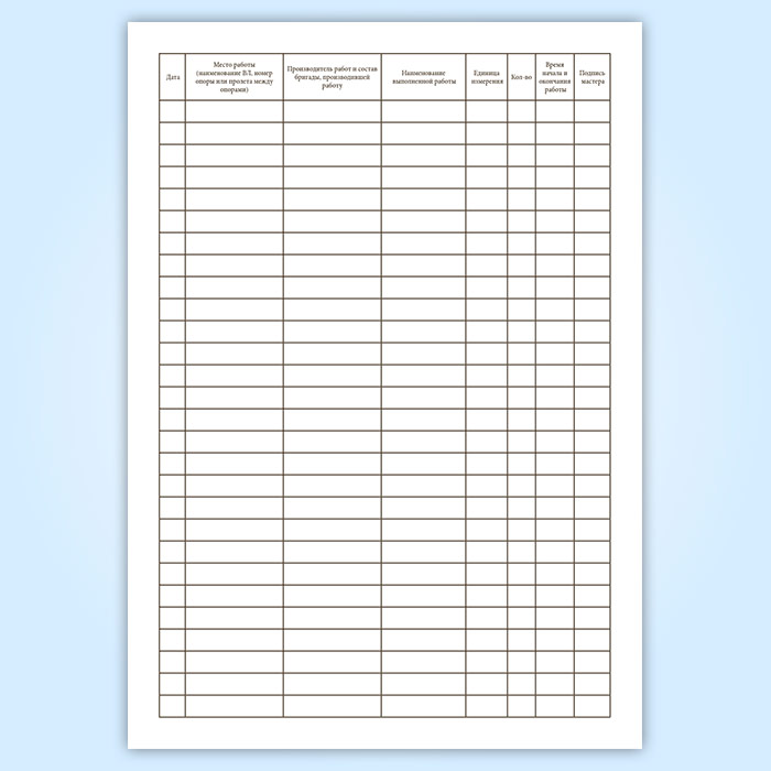 Журнал учета работ на ВЛ электропередачи напряжением 0,38-20 кВ в Верее купить