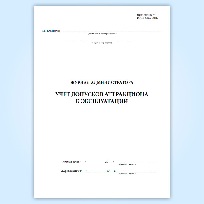 Журнал администратора. Учет допусков аттракциона к эксплуатации в Верее купить