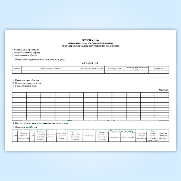 Журнал инженерно-геологического обследования мест устройства малых искусственных сооружений в Верее купить