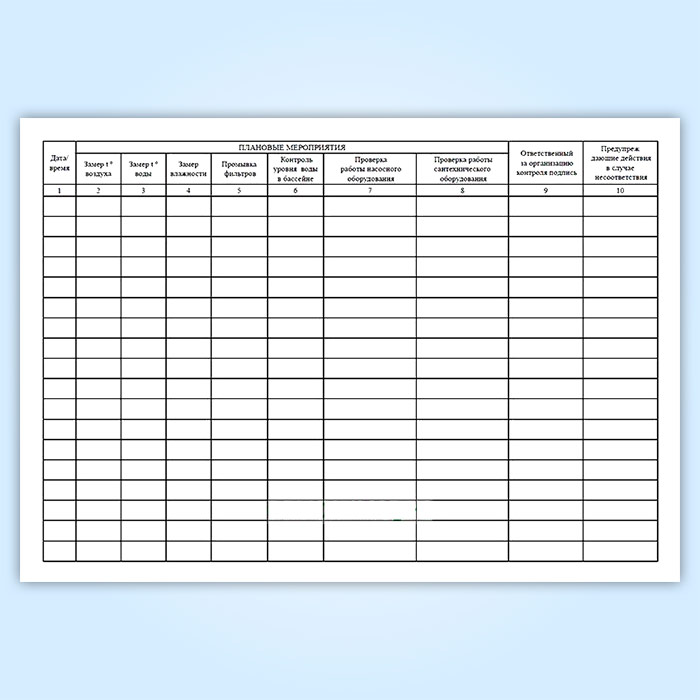 Журнал плановых мероприятий по бассейну в Верее купить