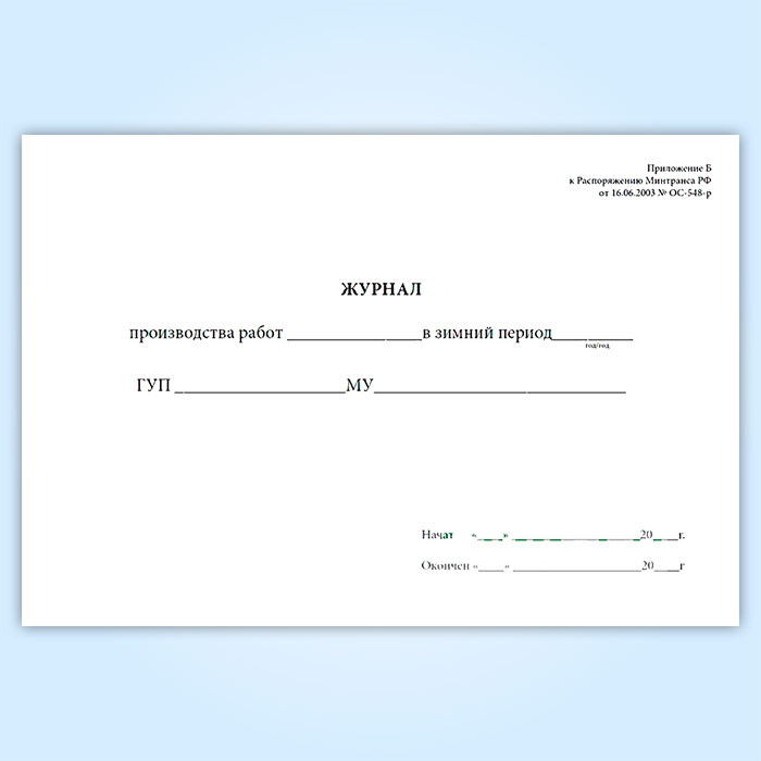 Журнал производства работ в зимний период, выполненных за время дежурства в Верее купить