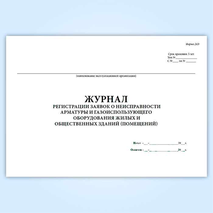 Журнал регистрации заявок о неисправности арматуры и газоиспользующего оборудования жилых и общественных зданий (помещений) (форма 24Э) в Верее купить