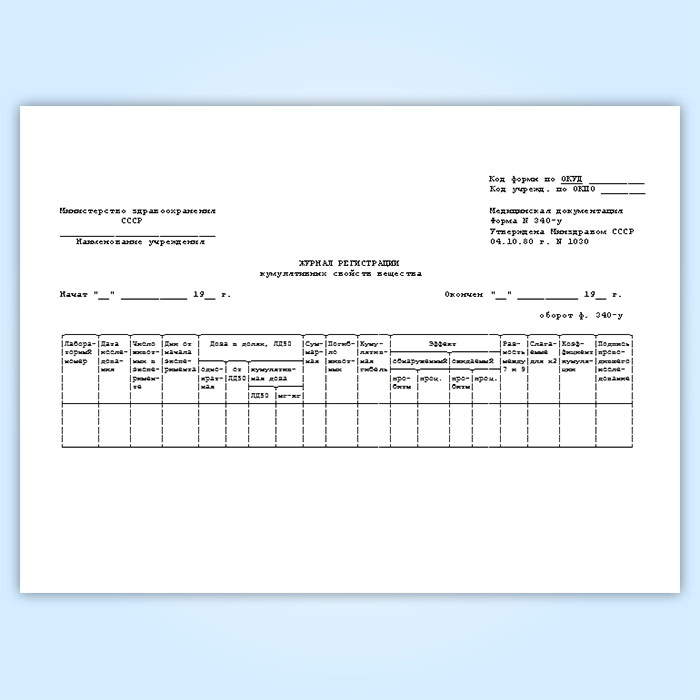 Журнал регистрации кумулятивных свойств вещества (форма № 340-у) в Верее купить