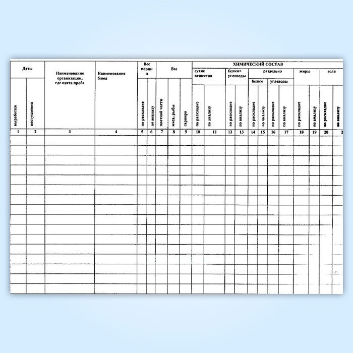 Журнал регистрации проб и результатов исследования готовых блюд и рационов на калорийность и химический состав (форма № 347-у) в Верее купить
