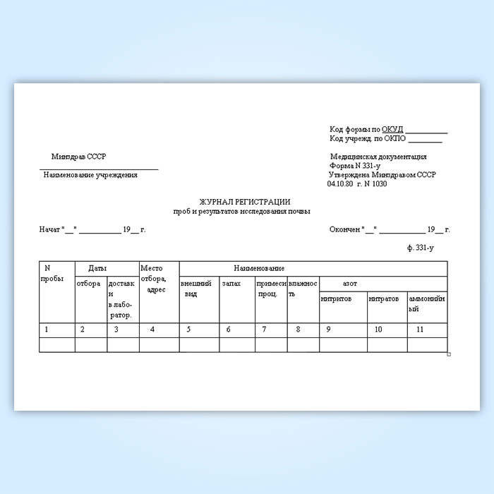 Журнал регистрации проб и результатов исследования почвы (форма № 331-у) в Верее купить