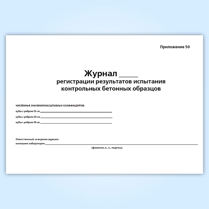 Журнал регистрации результатов испытания контрольных бетонных образцов в Верее купить