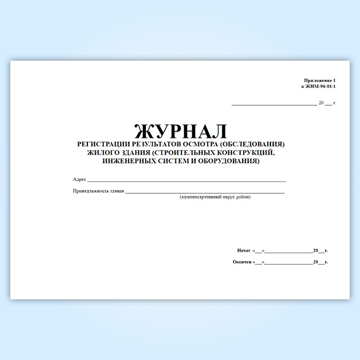 Журнал регистрации результатов осмотра (обследования) жилого здания (строительных конструкций, инженерных систем и оборудования). (Приложение к форме ЖНМ-96-01/1) в Верее купить