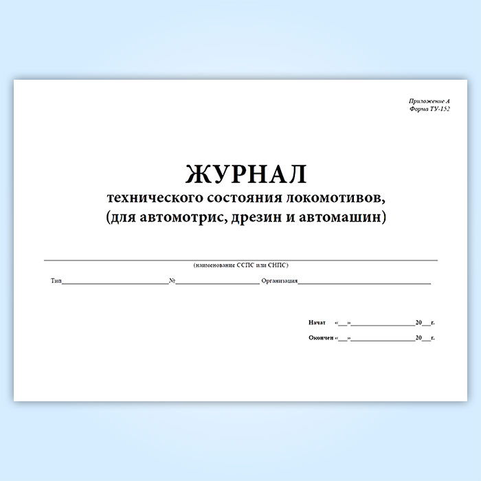 Журнал технического состояния локомотивов (для автомотрис, дрезин и автомашин) (форма ТУ-152) в Верее купить