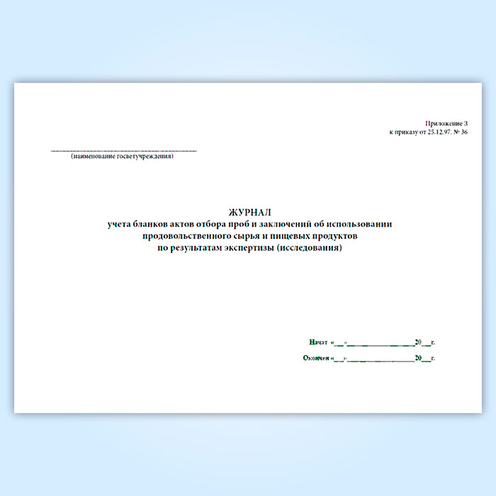 Журнал учета бланков отбора проб и заключений об использовании продовольственного сырья и пищевых продуктов в Верее купить
