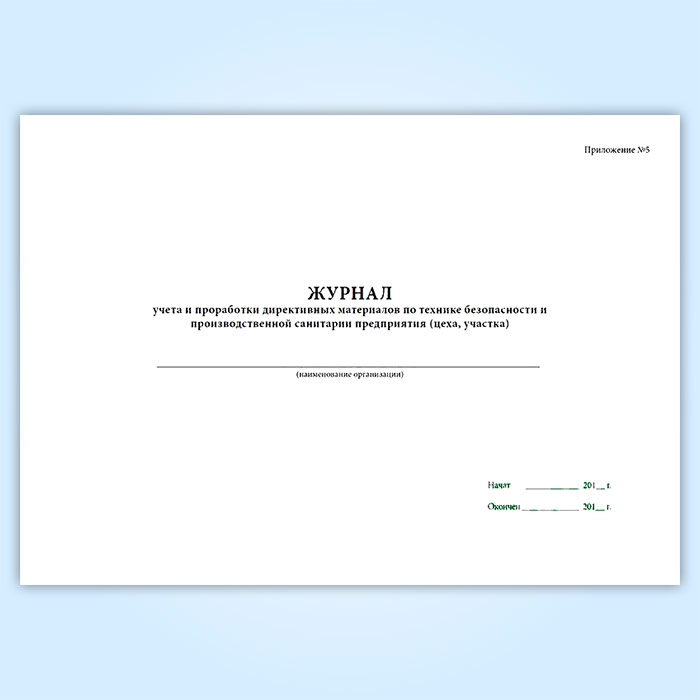 Журнал учета и проработки директивных материалов по технике безопасности и производственной санитарии предприятия (цеха, участка) в Верее купить