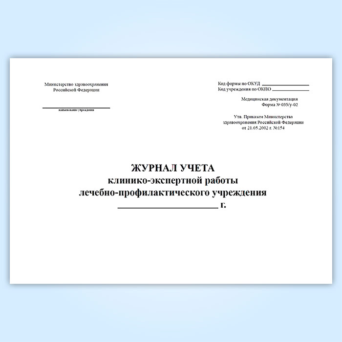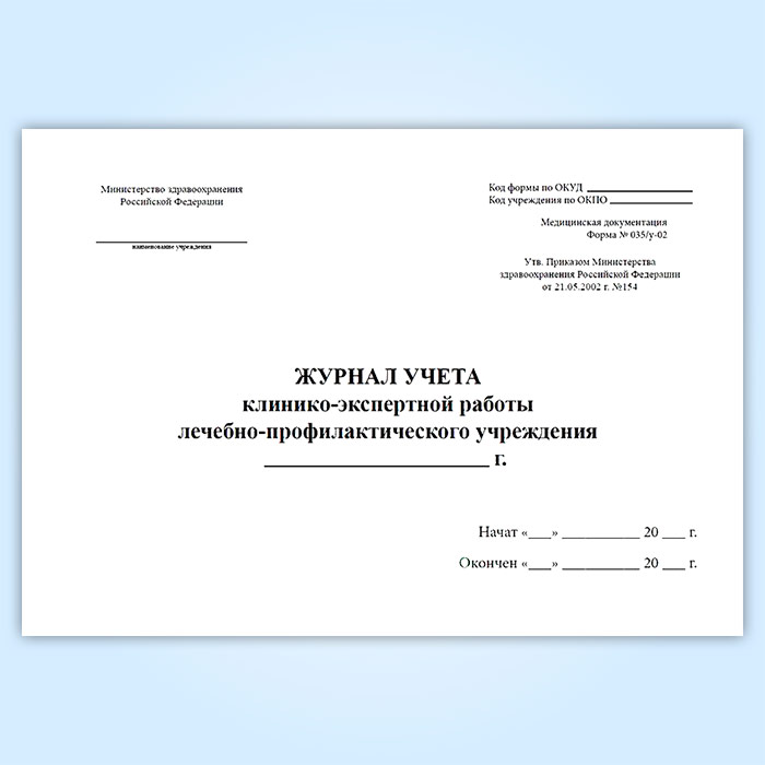 Журнал учета клинико-экспертной работы лечебно-профилактического учреждения (форма № 035/у-02) в Верее купить