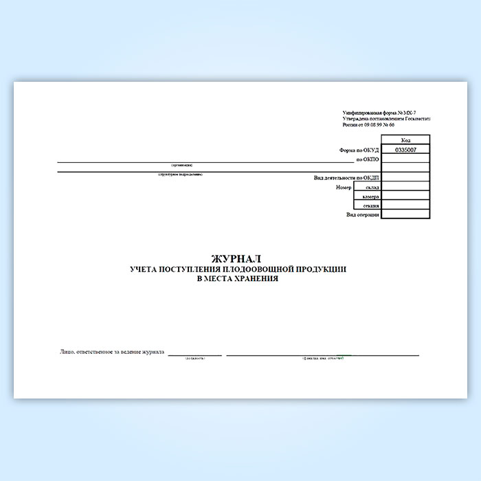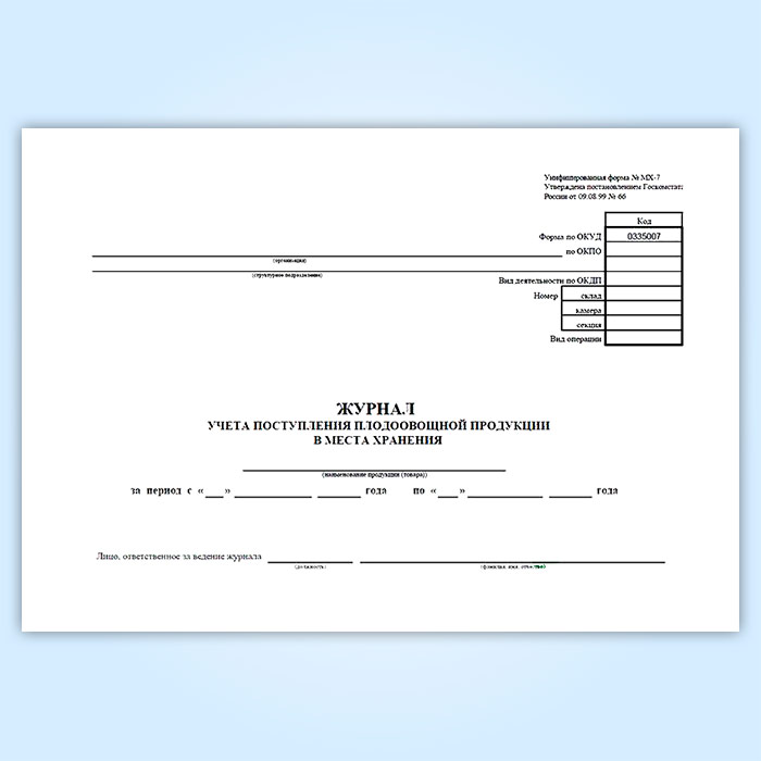 Журнал учета поступления плодоовощной продукции в места хранения (форма МХ-7) в Верее купить