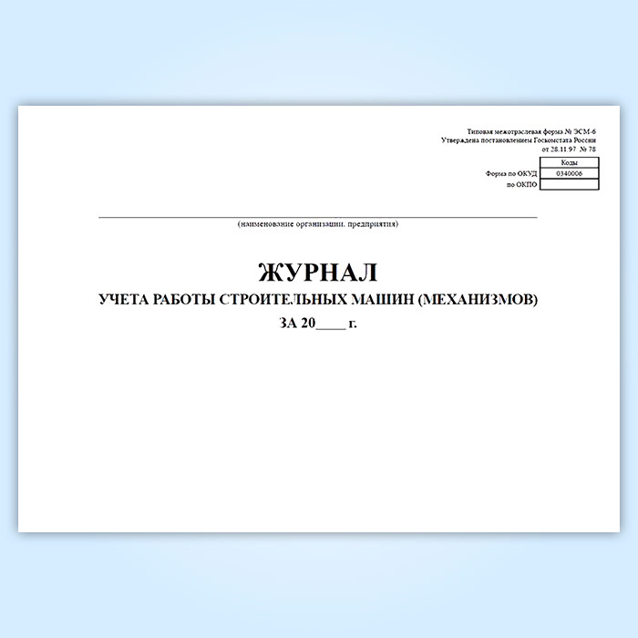Журнал учета работы строительных машин (механизмов) (форма ЭСМ-6) в Верее купить