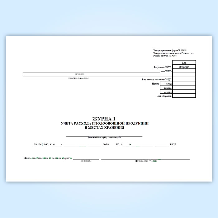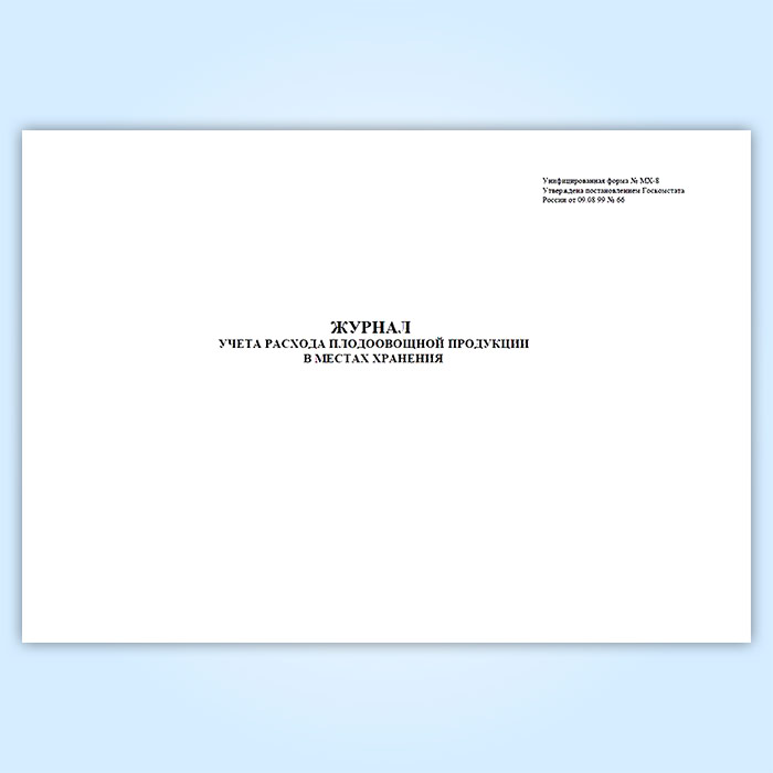 Журнал учета расхода плодоовощной продукции в местах хранения (форма МХ-8) в Верее купить