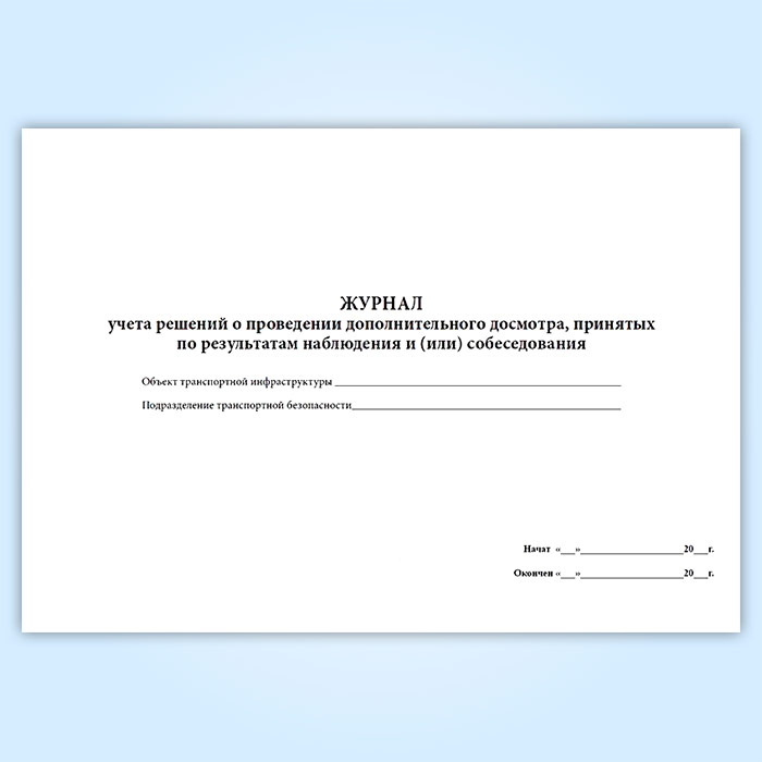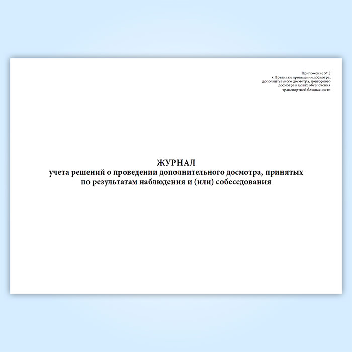 Журнал учета решений о проведении дополнительного досмотра, принятых по результатам наблюдения и (или) собеседования в Верее купить
