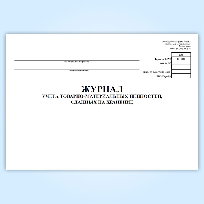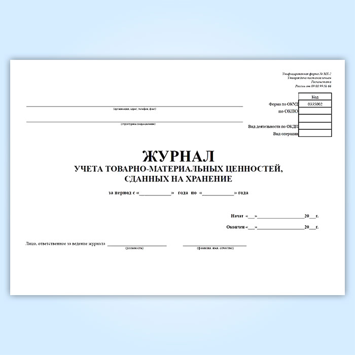 Журнал учета товарно-материальных ценностей, сданных на хранение (форма № МХ-2) в Верее купить