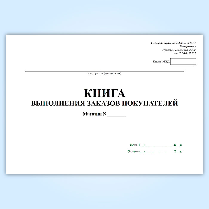 Книга выполнения заказов покупателей (специализированная форма № 8-РТ) в Верее купить