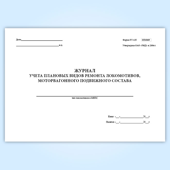 Книга учета плановых видов ремонта локомотивов, моторвагонного подвижного состава (форма ТУ-125) в Верее купить