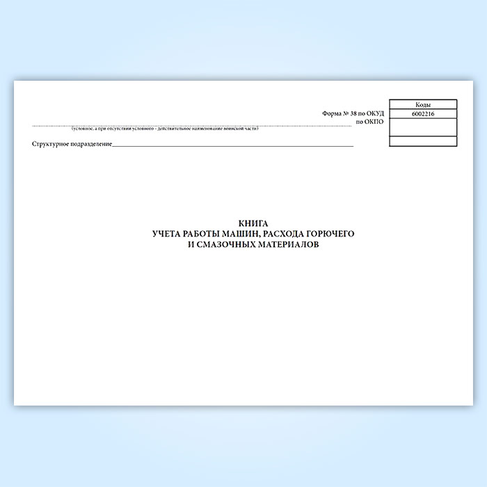 Книга учета работы машин, расхода горючего и смазочных материалов (форма 38, ОКУД 6002216) в Верее купить
