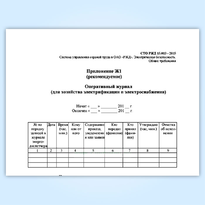 Оперативный журнал (для хозяйства электрификации и электроснабжения) (СТО РЖД 15.013-2015) в Верее купить