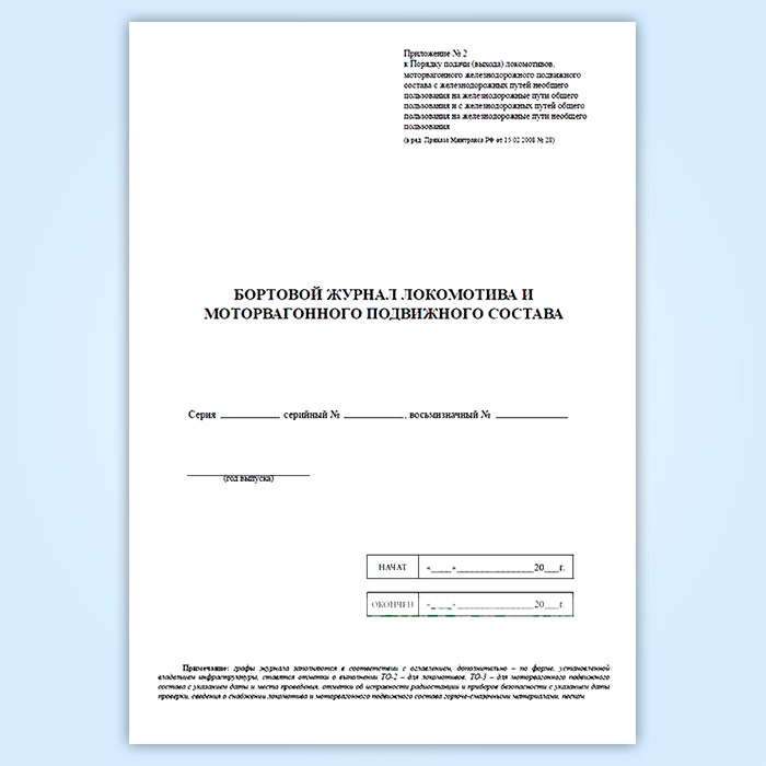 Бортовой журнал локомотива и моторвагонного подвижного состава в Верее купить
