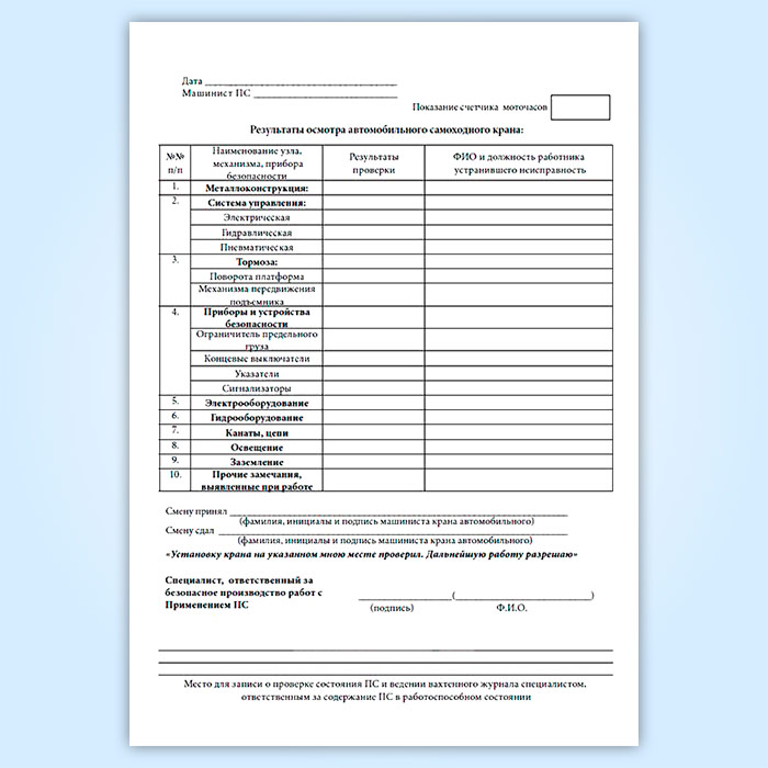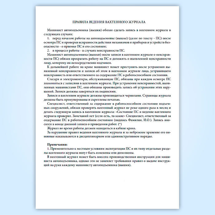 Вахтенный журнал машиниста автоподъемника (вышки) в Верее купить