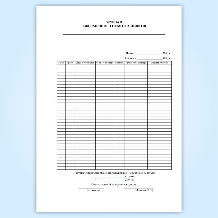 Журнал ежемесячных осмотров лифтов в Верее купить