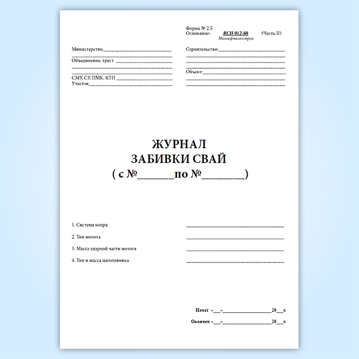 Журнал забивки свай (форма 2.5) в Верее купить