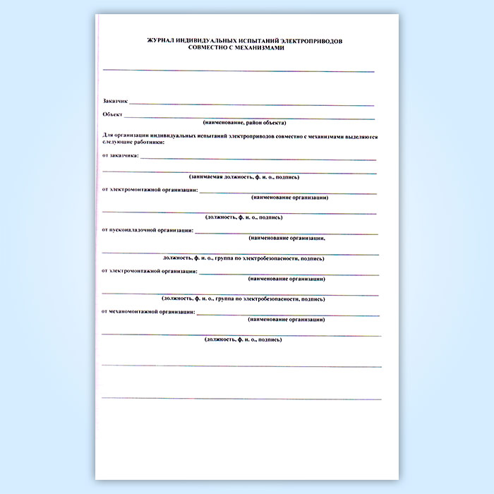 Журнал индивидуальных испытаний электроприводов совместно с механизмами в Верее купить